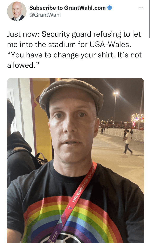 Grant Wahl estaba casado con una doctora que es parte del Gabinete del Presidente Biden. Ya había sacado una nota anteriormente criticando a Azerbaiyán (para sorpresa mía) y había sido muy crítico con la elección de Qatar como sede, pero fue igual. En la sala de prensa, antes de uno de los encuentros de Estados Unidos, había intentado ingresar a la sala de prensa con una camiseta con los colores del arcoiris. Había sido detenido durante 30 minutos, pero según el hermano, había recibido amenazas de muerte. El Viernes hablaba de que tenía bronquitis y el Sábado falleció mientras cubría a Argentina (un país que quería mucho y donde había vivido unos años)- Países Bajos. QEPD y esperamos que se investigue que fue lo que le ocurrió.